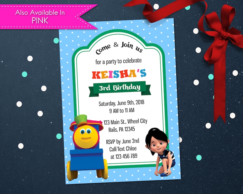 Personalized Bob The Train Birthday Invitation Photo Card Etsy